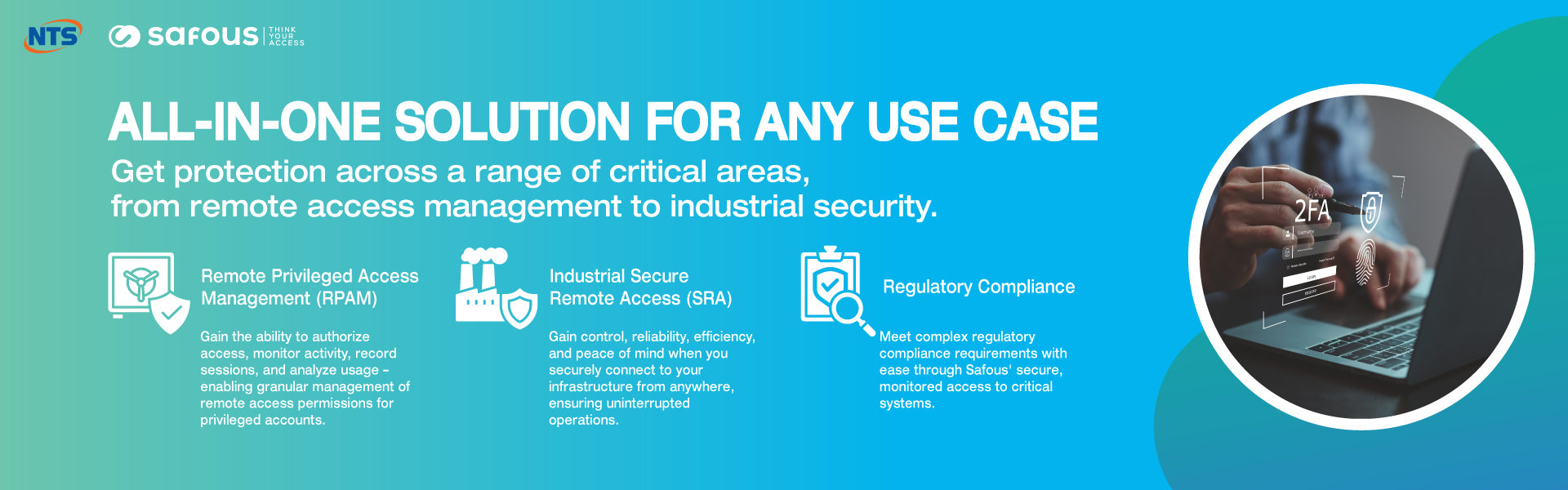 NTS tự hào là nhà phân phối trọn bộ giải pháp với công nghệ vượt trội, tân tiến nhất về hạ tầng mạng, hệ thống an ninh, bảo mật, giúp bảo đảm hệ thống CNTT của hàng ngàn khách hàng được bảo vệ và vận hành thông suốt.