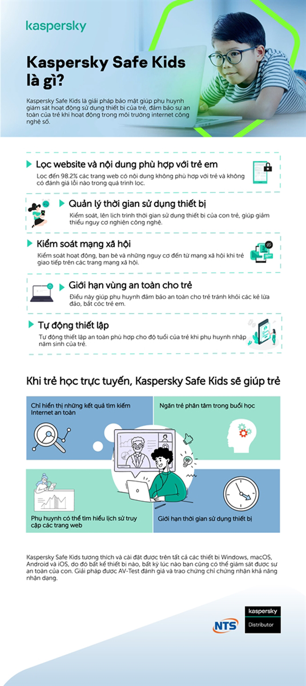 Việc kiểm soát và bảo vệ con trong quá trình học trực tuyến đang là một nỗi lo mà rất nhiều phụ huynh đang trăn trở và không biết làm thế nào cho hợp lý. Giữa hàng loạt thông tin đến từ nhiều nguồn trên internet, mạng xã hội, trẻ em trở thành món mồi ngon cho các kẻ tấn công an ninh mạng. Hiểu được những nguy cơ bảo mật mà trẻ em có thể gặp phải cũng như nỗi trăn trở của các bậc phụ huynh, Kaspersky Safe Kids được ra đời và trở thành công cụ đắc lực giúp phụ huynh bảo vệ con một cách hiệu quả và an toàn.