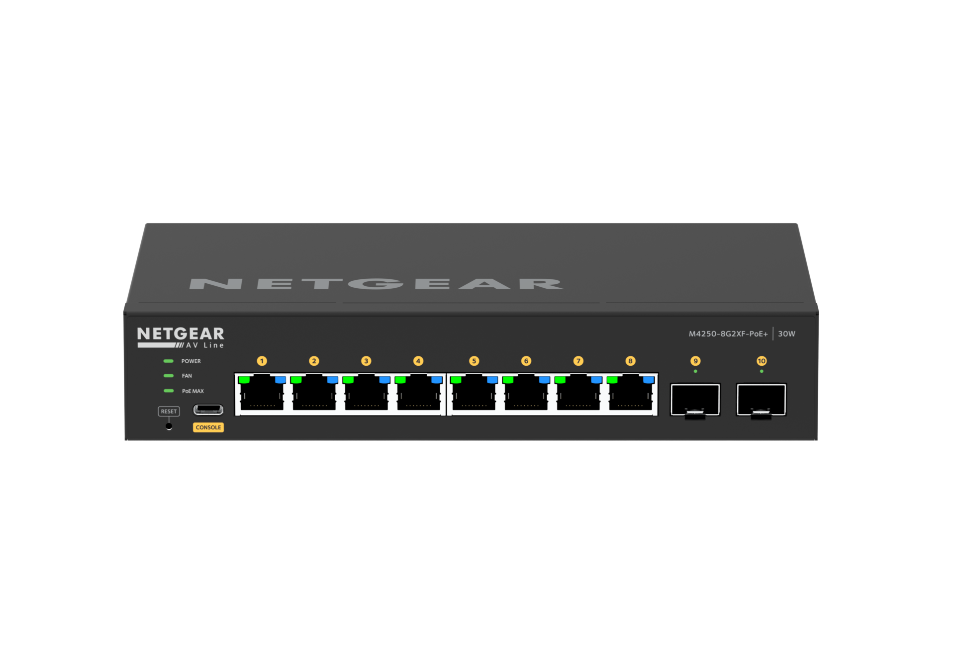 Pro AV Line M4250-8G2XF-PoE+ (GSM4210PX) — 8x1G PoE+ and 2xSFP+ Layer 3 Managed Switch