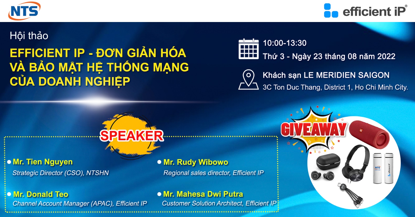 THƯ MỜI THAM DỰ HỘI THẢO EFFICIENT IP – ĐƠN GIẢN HÓA VÀ BẢO MẬT HỆ THỐNG MẠNG CỦA DOANH NGHIỆP Kính gửi Quý Đối Tác, Công ty Nam Trường Sơn xin gửi tới Quý Anh/chị và công ty lời chúc sức khỏe và thành công. Là một trong những nhà cung cấp DDI…